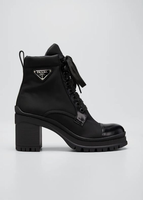 Kétféle stílusban kaphatóak a Brushed bőr és nejlon bakancsok, melyek a Prada két jellegzetes anyagát ötvözik. Vigyázat, a magasabb sarkú verzió annyira népszerű, hogy a legtöbb méretben már el is fogyott.
