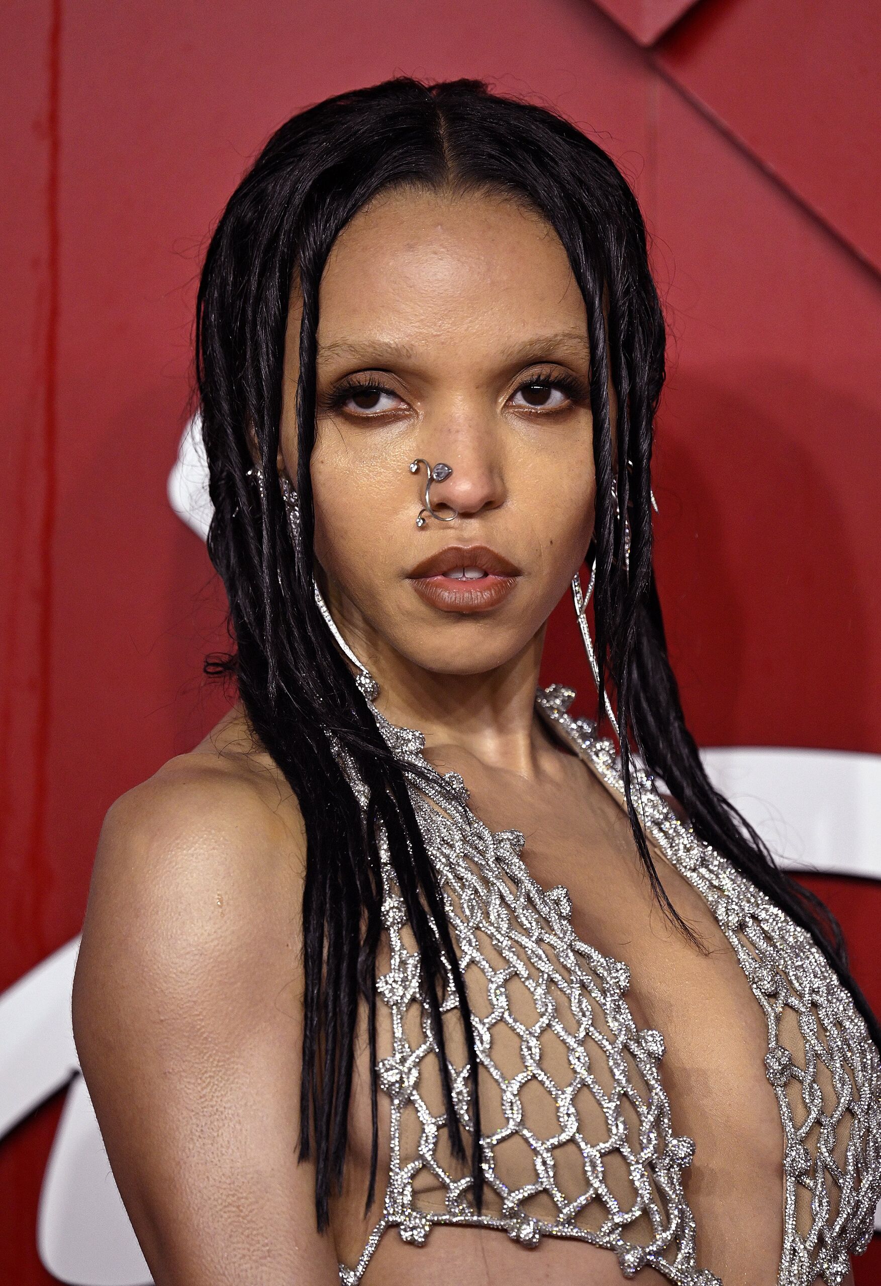FKA csavart hajjal és kilencvenes évekbeli barna tónusú ajkakkal és szemekkel jelent meg.