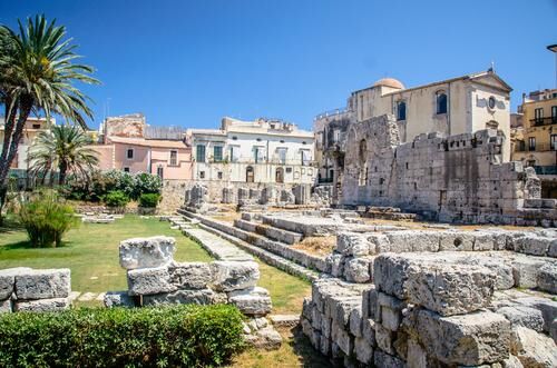 A legenda szerint Arethusza itt változott nimfává. Persze nem ettől lett a Világörökség része az ősi belváros, Ortigia, melynek fekvése valóban egyedülálló, a félsziget csúcsánál néhány hídon lehet átmenni a szigetre. Az ősidők óta itt megtelepedő kultúrák mind rajta hagyták ugyan névjegyüket, de ezekből jóval kevesebb maradt fenn két földrengés miatt, melyek után barokk stílusban építették újjá a történelmi belvárost. Apollón temploma, Arethusza szökőkútja, az ókori színházépület, s mellette a kőfejtő a Dionüsziosz füle elnevezésű üreggel, az amfiteátrum, valamint a 7. században épült katedrális szerencsére átvészelte a katasztrófákat, így az ókor rajongói számára is aranybánya a város.
