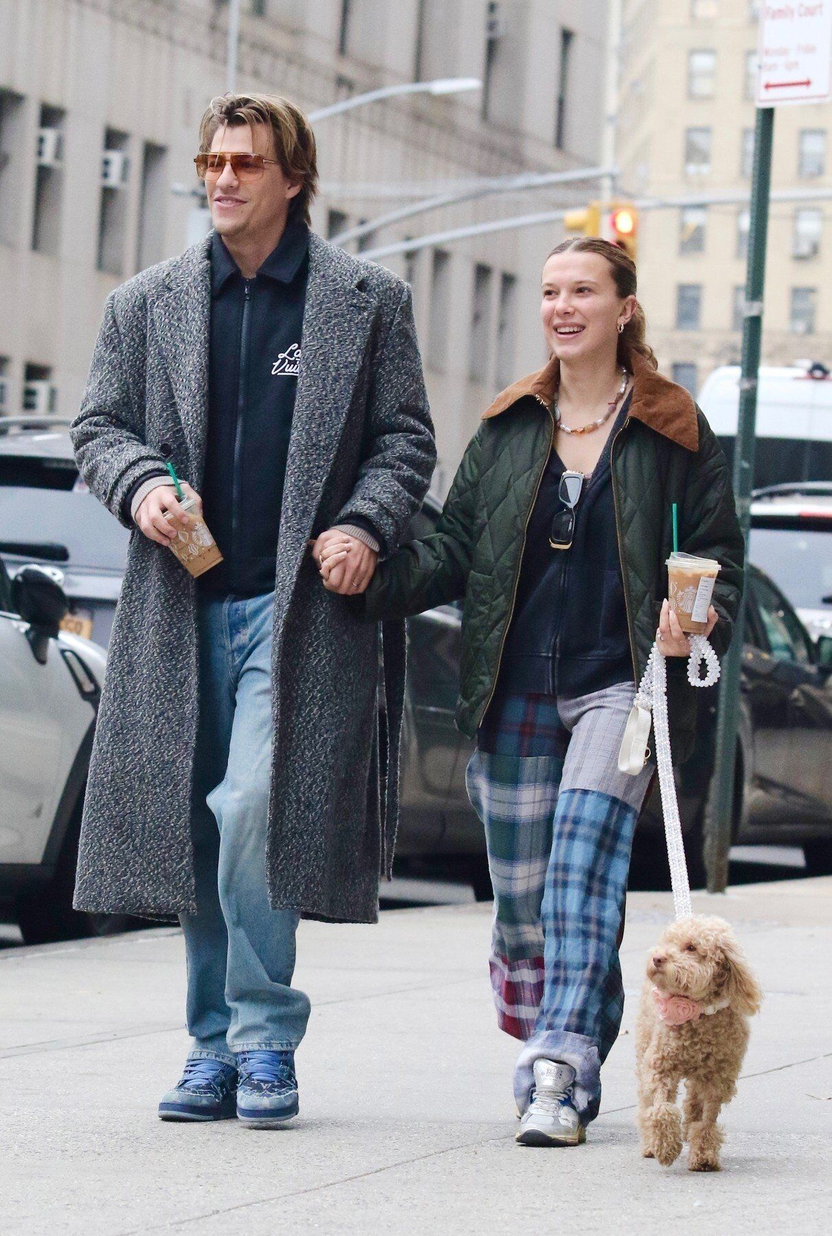 Úgy tűnik, a színésznő már ehhez igazította legutóbbi stílusválasztásait is. A Stranger Things utolsó napján napján New Yorkban fotózták le kutyasétáltatás közben Bongiovival, a színésznő egy steppelt zöld kabátot (sokak őszi kedvence), edzőcipőt és kockás pizsamanadrágot viselt. Smink nélkül volt, a haját laza, alacsony lófarokba fogva viselte, szögletes fekete napszemüveggel és többszínű gyöngyös nyaklánccal. Bongiovi szintén laza maradt egy szürke felöltőben, farmerben és cipzáras Louis Vuitton ingben. A kutyasétáltatáshoz mindketten jegeskávét ittak, ahogy egész évben.