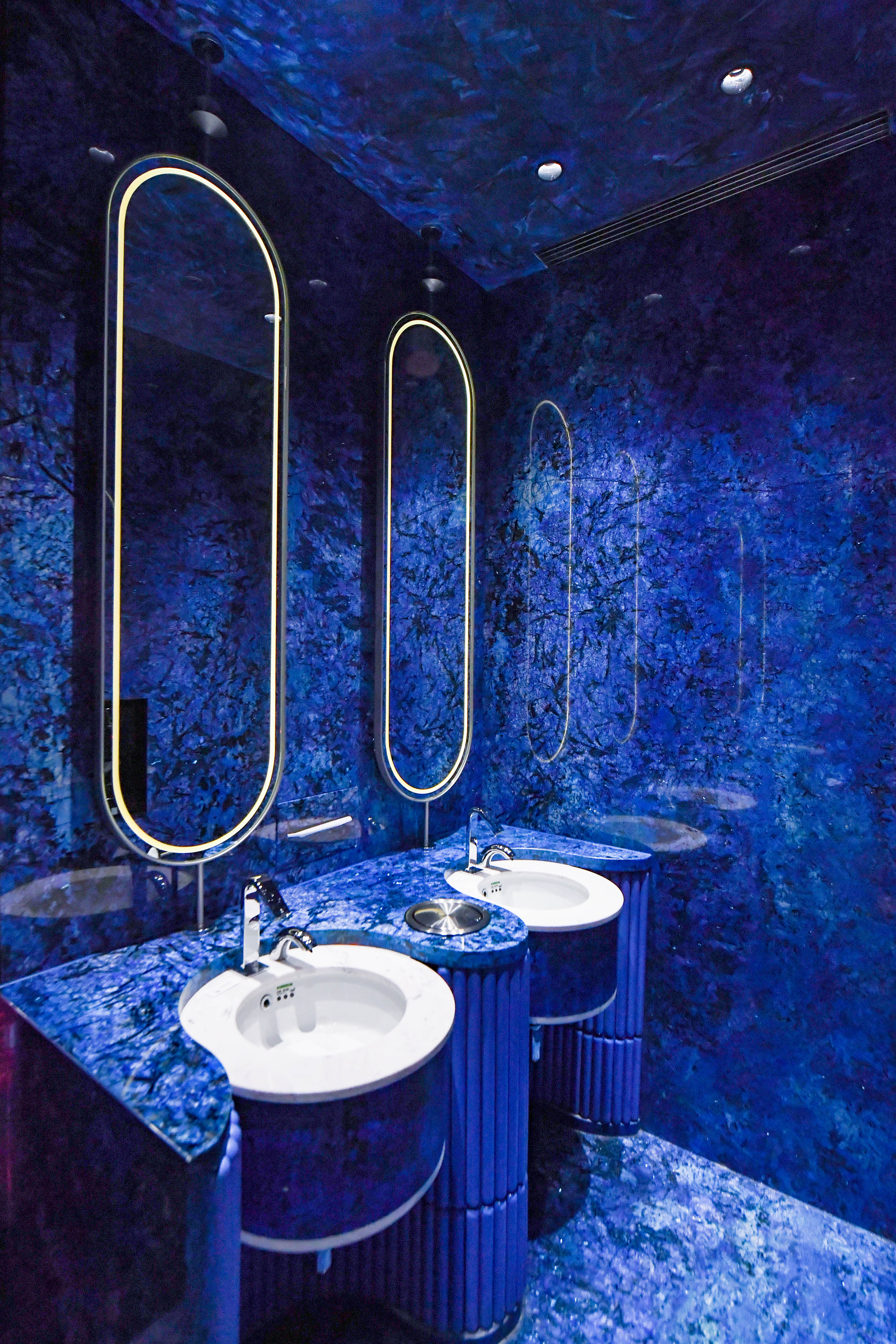 Ahogy a The Sun is kiemeli, a látogatók egy úgynevezett élménytéren keresztül lépnek be a mosdók világába. A belső térben sötétzöld árnyalatok, arany részletek és természet ihlette motívumok jelennek meg. A padló fekete-fehér mintái például pillangószárnyakat idéznek, az arany elemek pedig a méhek világára utalnak.